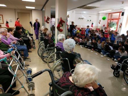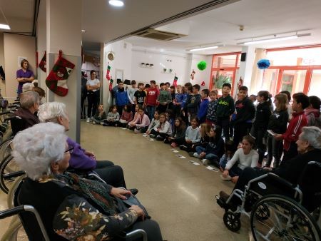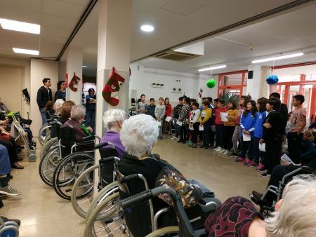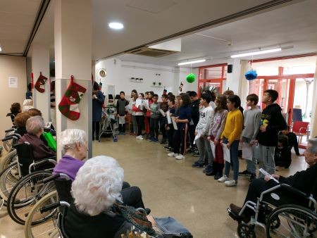 El passat dia 19 de Desembre vam tenir una de les visites més dolces de Nadal i, es que ens van venir a visitar els nens i nenes de 3r, 4rt, 5è i 6è curs de primària del Col·legi Mare de Déu de Montserrat de Les Borges Blanques i ens van cantar un petit repertori de nadales amb diferents llengües.