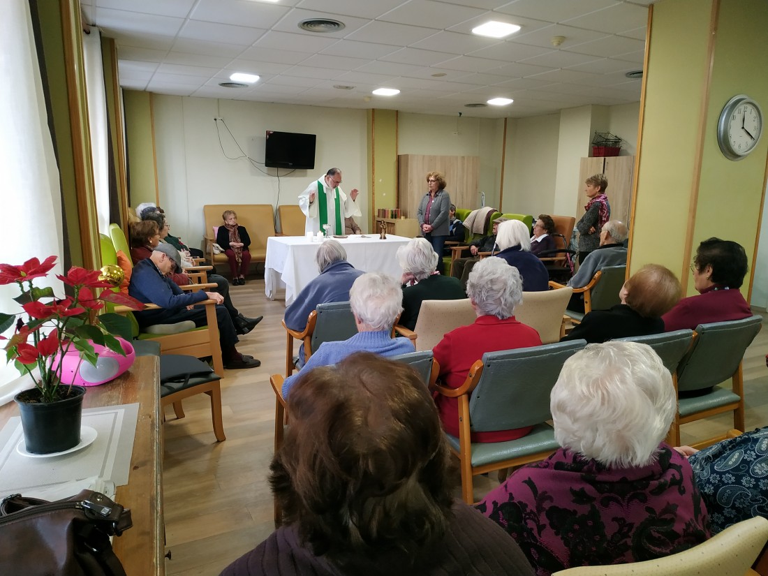 Avui hem celebrat la missa mensual, de febrer. Facilitada pel mossèn Miquel Àngel. Els nostres avis estan molt contents amb el mossèn, ja que aquest explica molt bé i està pendent de tots.