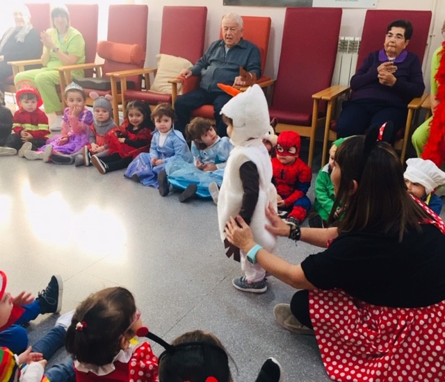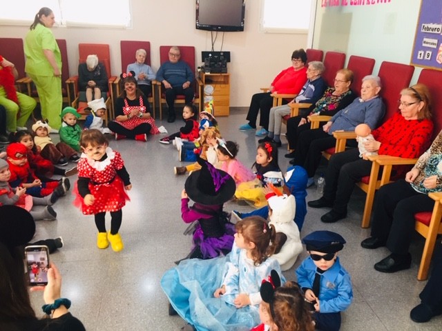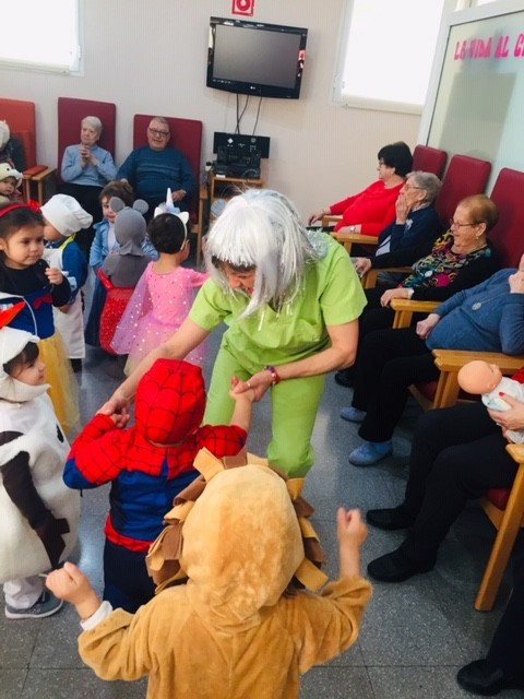 Aquest matí hem rebut la visita dels nens de la llar d'infants els patufets. Han vingut amb la il.lusió d'ensenyar-nos les seves disfresses. Avis i nens estaven tan contents!!