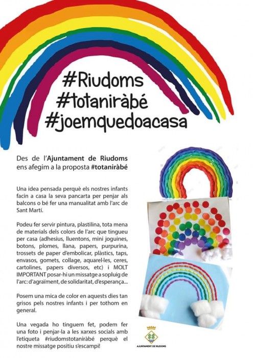 Des de la Residència de l'Onada de Riudoms ens hem unit a la proposta que ha realitzat l'Ajuntament de Riudoms, on animen a realitzar cartells, amb l'Arc de Sant Martí i missatges d'esperança. Els nostres residents han elaborat uns Arcs de Sant Martí molt especials que fa dies que llueixen a l'entrada del nostre centre.