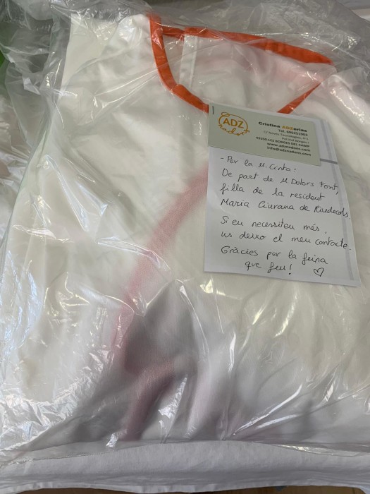 Aquest cap de setmana hem rebut més donatius. D'una banda, volem donar les gràcies a la família de la nostra resident, la Sra. Maria Ciurana, i a ADZ nadons, pel donatiu de 9 bates impermeables. GRÀCIES!