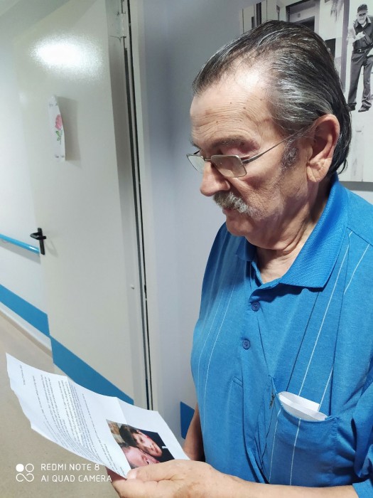 Aquí tenim a Antonio rebent la carta d'en Josep, l'ha llegit molt content i amb ganes de contestar-la i fer-se amics per carta!