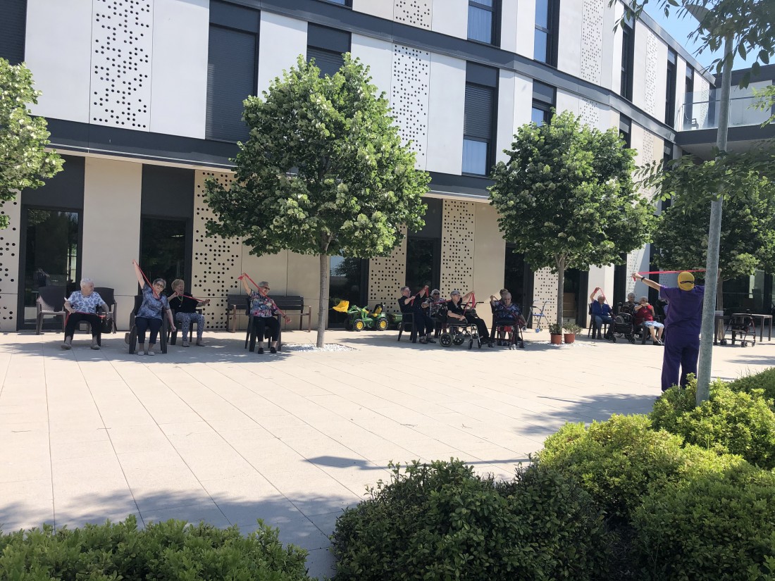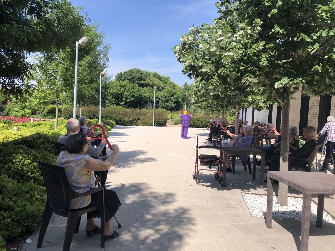 El dissabte 23 de maig a la residència Can Jorba vam fer un taller de gimnàstica al jardí, acompanyats de bon temps i calor, ens posem tots en forma!