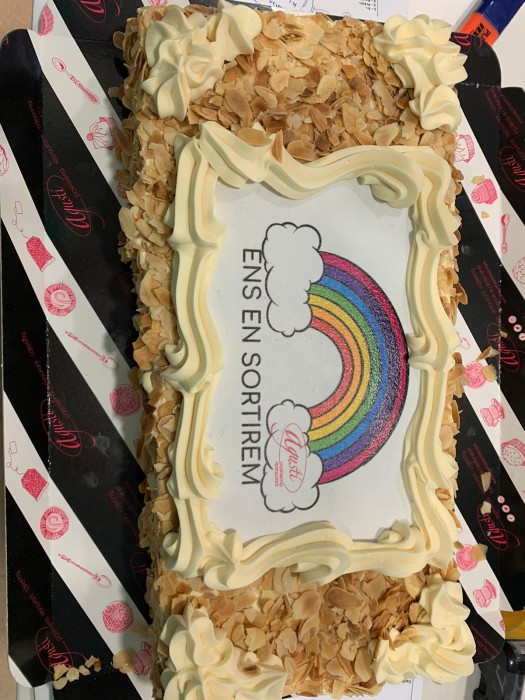 Aquest matí la PASTISSERIA AGUSTÍ de Navarcles ens ha portat un pastís enorme per tots els nostres avis i àvies. Se l'han menjat de postres i els hi ha encantat.