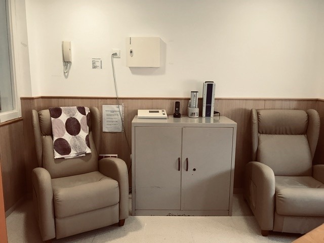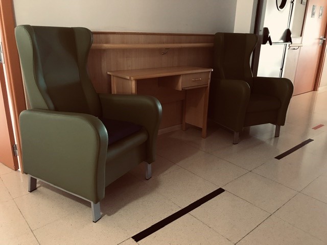 I per a un altre grup d'avis i àvies, hem adaptat sillonets i taules davant de les seves habitacions.