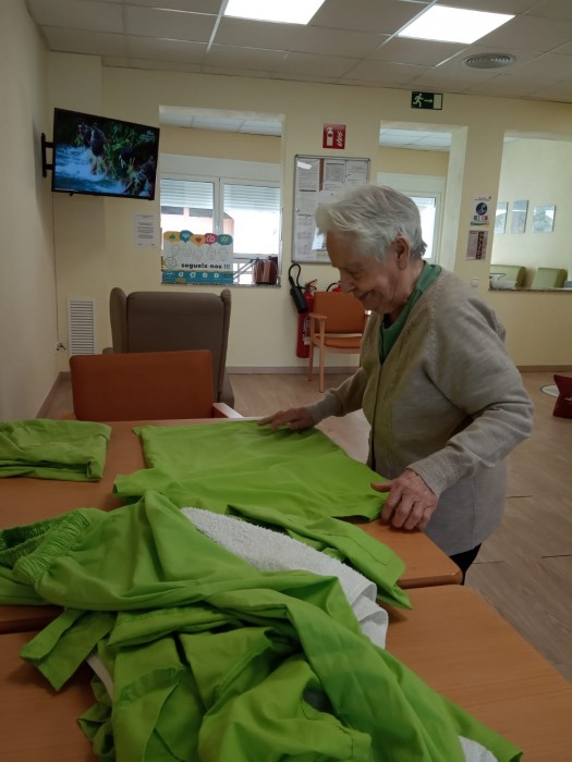 Ja fa una setmana que hem obert el centre de dia i anem recuperant la normalitat a poc a poc. La Manuela segueix participant dels tallers vocacionals com abans. Continua fent les tasques amb tanta rapidesa com quan treballava de "sirvienta" a casa del secretari, tal i com ella ens explica sempre.