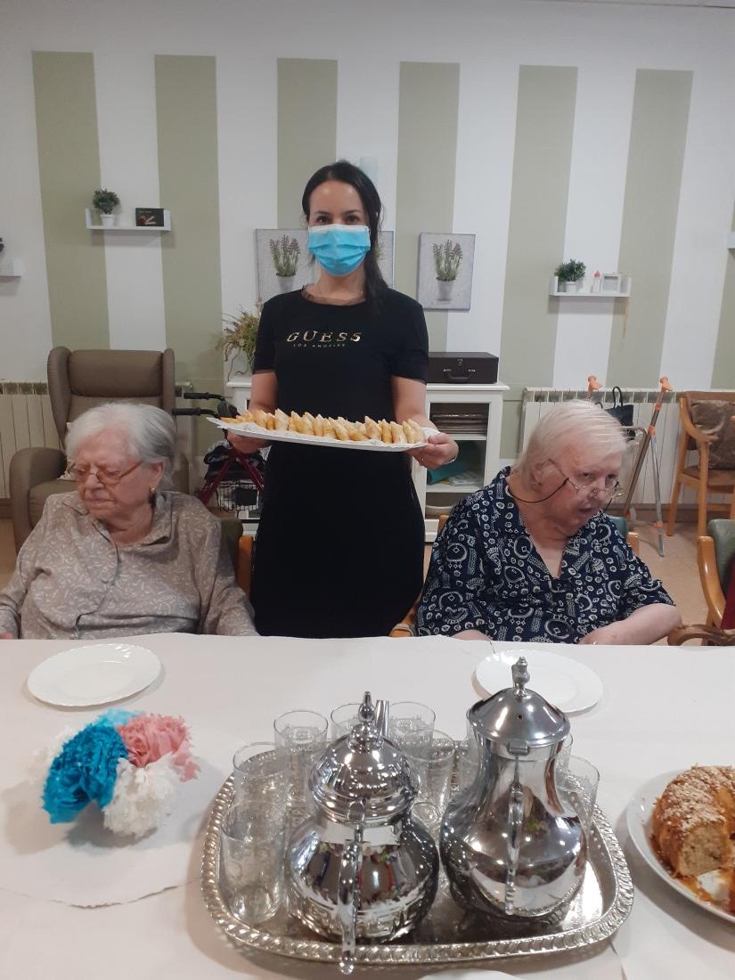 Avui la nostra treballadora Sana ha preparat un berenar marroquí per a tots els nostres residents. L'hem acompanyat amb tè marroquí amb menta. Les pastes totes fetes per la Sana estaven boníssimes! Com podeu veure alguna àvia s'hi llepava els dits!!! Gràcies Sana per aquesta tarda especial que ens has preparat! I ja t'hem dit que la volem repetir!