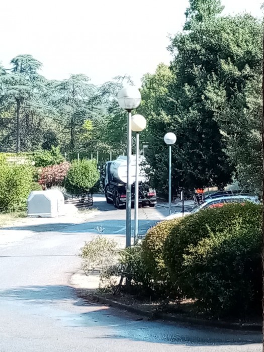 La brigada de desinfecció de l'Ajuntament de Cerdanyola, continúa realitzant la tasca en els exteriors del centre. Gràcies per la vostre feina que ens ajuda en la lluita.