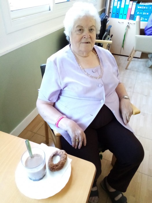 Aquesta tarda els residents de la Residència Onada de Riudons, han tingut un berenar molt diferent, la nostra cuinera "Aziza", ha preparat unes rosquilles boníssimes, ens han recordat als vells temps, quan en menjàven, quines cares de felicitat i de satisfacció!.