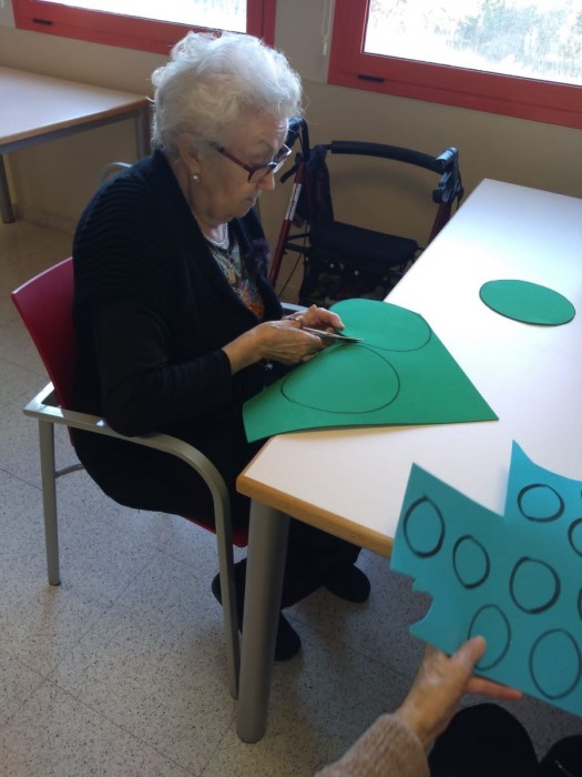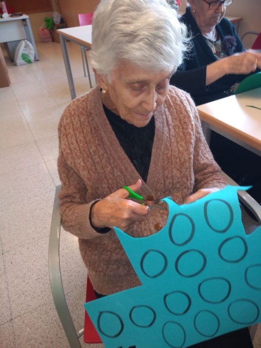 Aquest matí ha sigut molt entretingut! uns quants/es hem sortit al jardí a prendre el sol i a gaudir del nostre jardí nou; uns altres, hem estat retallant per preparar el nadal i per últim, a la segona planta han celebrat els 74 anys de la Sra Clemencia, la qual ens ha convidat a tots a un bocí de pastís!