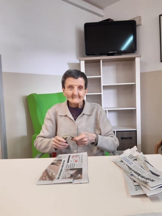 Avui al matí hem sortit també a veure el jardí nou de la casa en petit comitè i hem estripat diaris per fer manualitats més endavant.