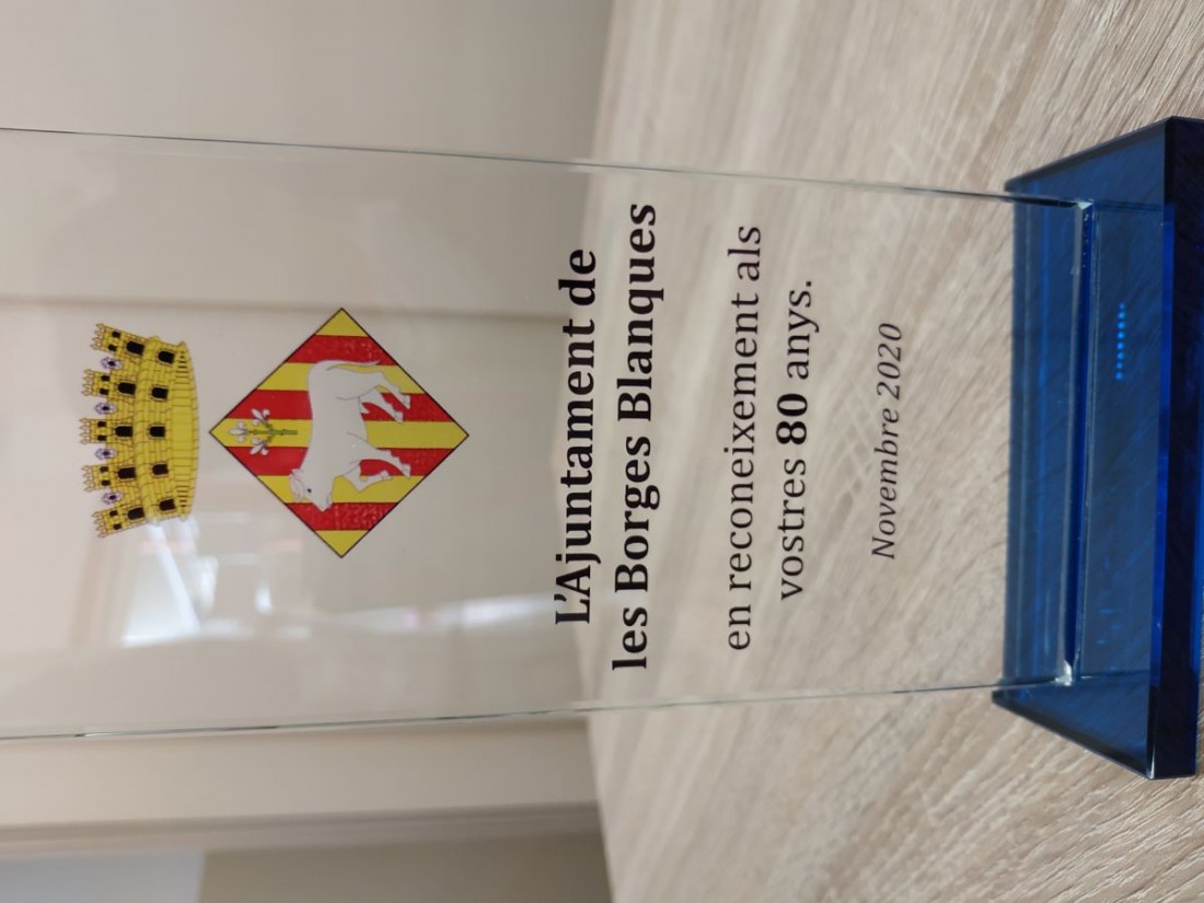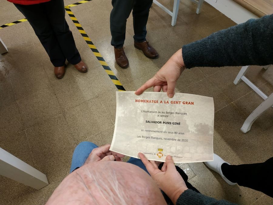 Avui al matí a vingut a visitar-nos l'alcalde de Les Borges Blaques per tal de fer entrega d'un diploma i una placa al Sr Salvador Pons pel seu 80è aniversari. S'ha posat molt content!