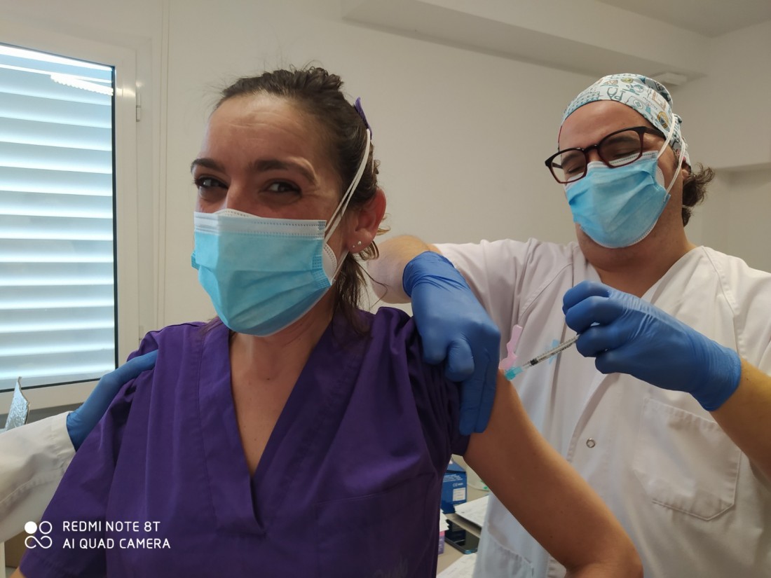 Avui les persones usuàries i els professionals de L'Onada Sant Vicenç de Castellet han rebut la vacuna contra el coronavirus. Aquesta és la primera de les dues dosis que rebran en les properes setmanes i el senyor Esteve Lafont, de 90 anys, ha estat el primer usuari del centre en rebre-la.