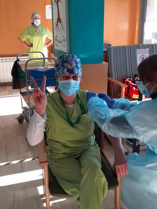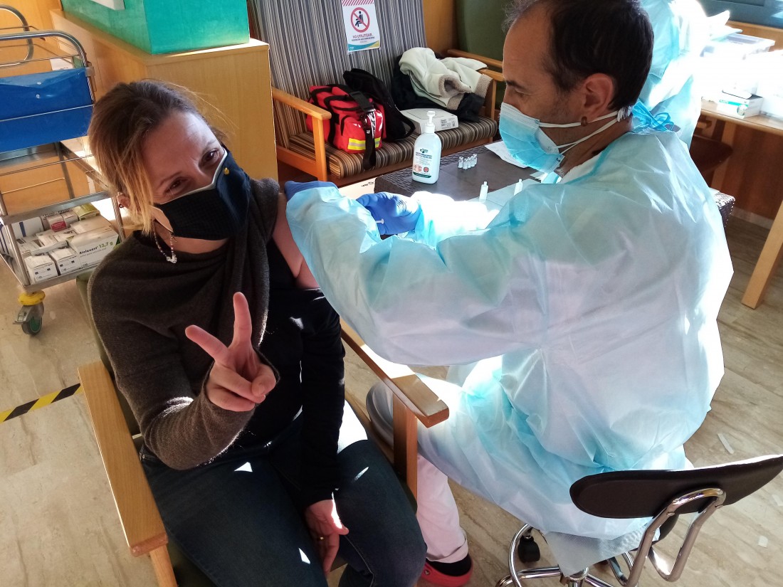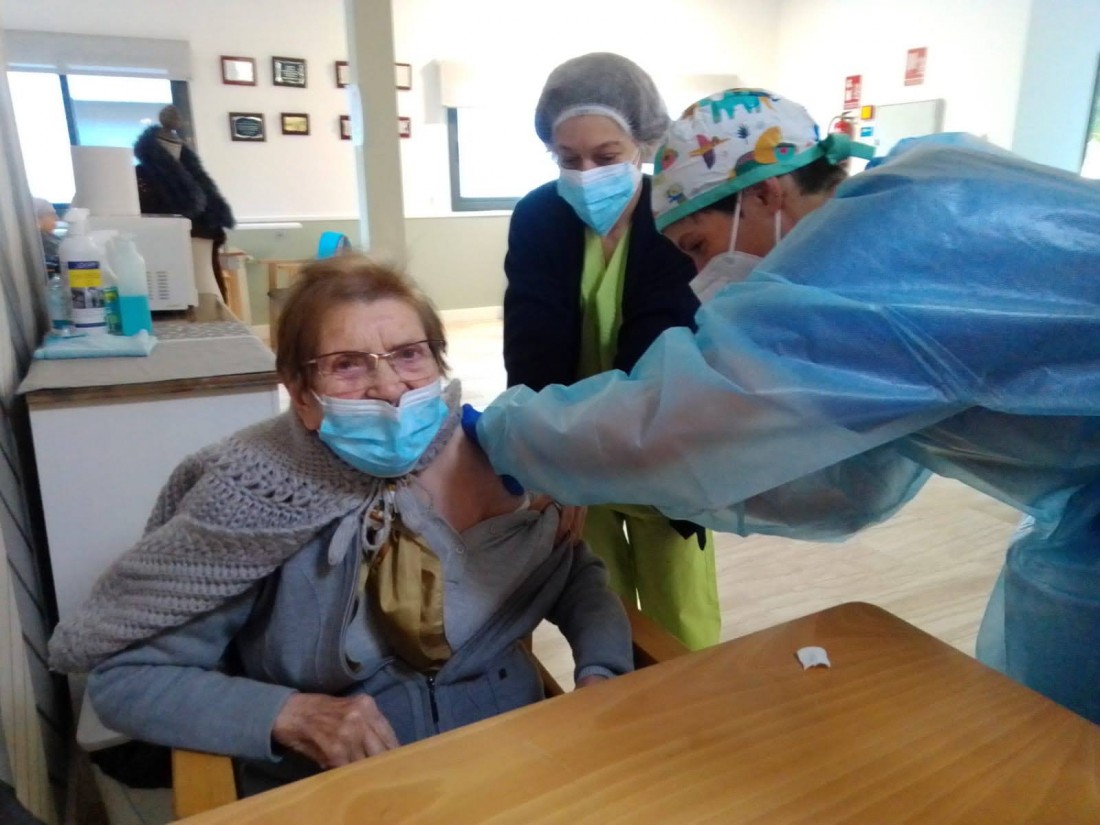 Aquest matí a L'onada Riudoms ens han vingut a vacunar contra la covid-19. L'equip i la majoria de les persones residents i usuàries de Centre de Dia, ja han rebut la primera dosi d'aquesta vacuna. La primera persona que s'ha vacunat ha estat la Directora del centre, Sole Menéndez.