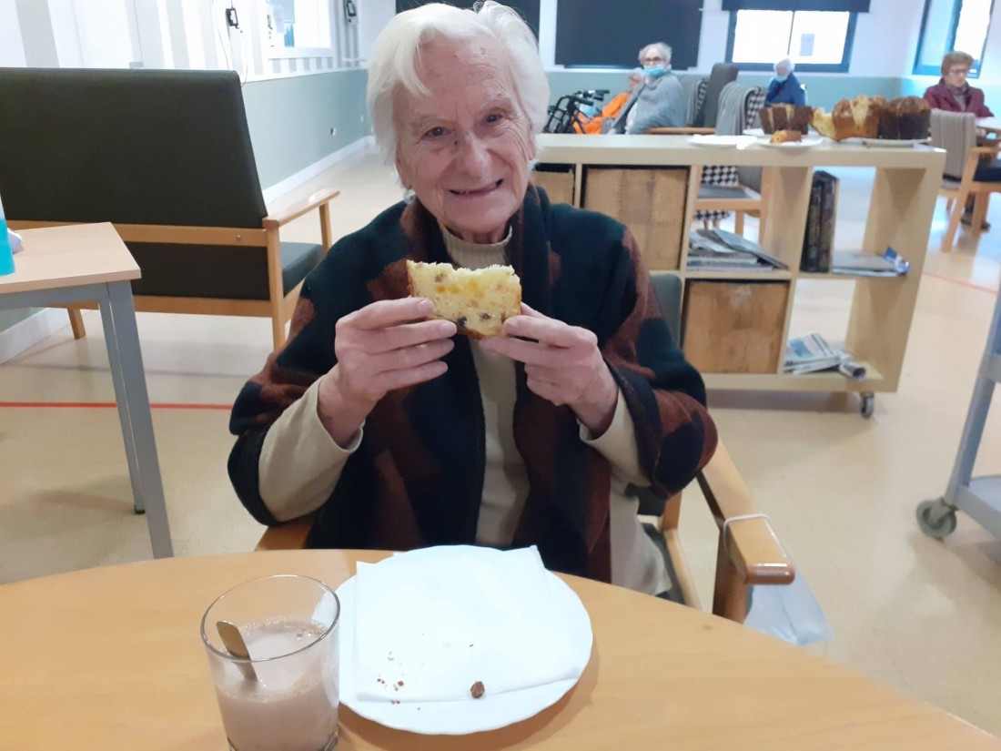 Amb motiu de celebració d'aquestes dues grans notícies, a la tarda vam fer un berenar especial per les persones residents, que van poder degustar el millor panettone d'Espanya, que ens van regalar des de la pastisseria Xocosave de Riudoms. Era boníssim, els residents van gaudir moltíssim!!