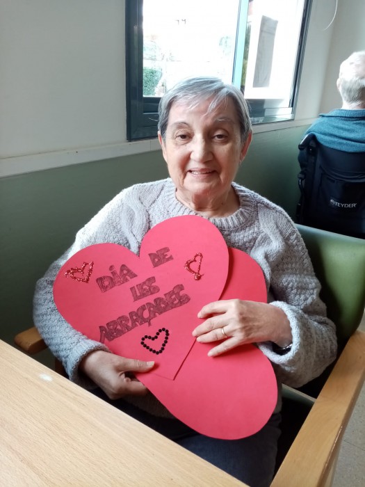 Hem parlat sobre els beneficis i la importància de les abraçades. També hem recordat abraçades històriques, i les persones residents han compartit records personals relacionats amb aquesta temàtica. També hem decorat aquests cors tan bonics als tallers de manualitats.