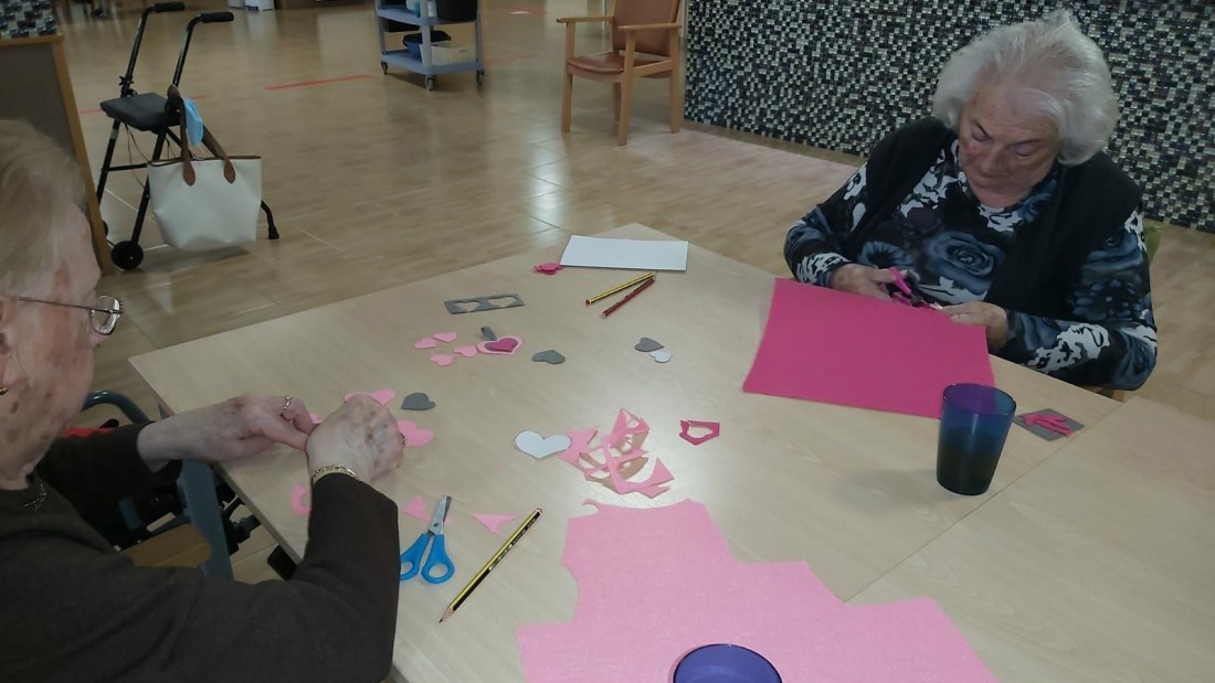 Avui hem començat a fer manualitats per al dia de Sant Valentin. A les residents del nostre centre els agraden molt els tallers de manualitats. Que creieu que estem preparant? ben aviat tindreu el resultat!
