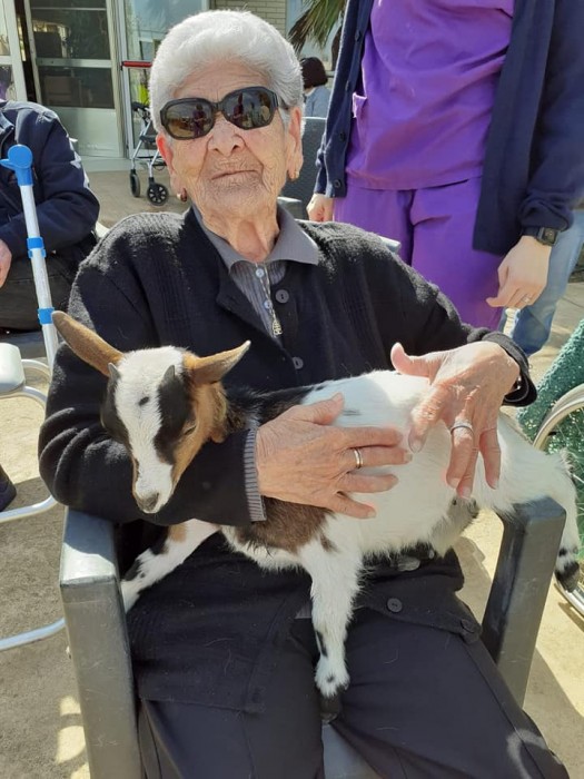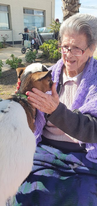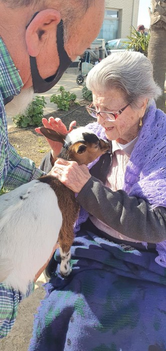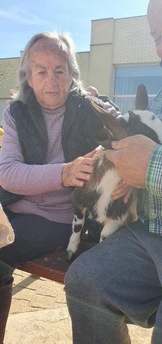 Avui els nostres residents han tingut una sorpresa al venir una cabreta a casa nostra, tothom ha tingut molt de goig de poder-la veure, tocar i sobretot ens ha fet riure i molt.