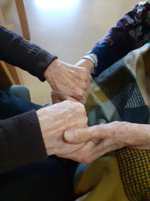 El que sí que sabem és que la Sra. Pepeta, als seus 109 anys, torna a estar amb nosaltres i amb la seva germana Susi! Va ser un retrobament d’allò més emotiu.