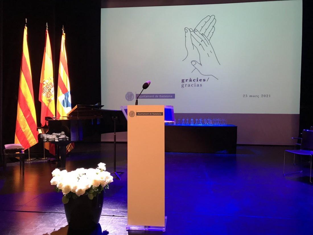 Ahir al vespre l'Ajuntament de Badalona va ralitzar un acte solemne per retre homentage a tots els treballadors i treballadores que han estat en lliuta contra la COVID-19 durant aquest darre any.
