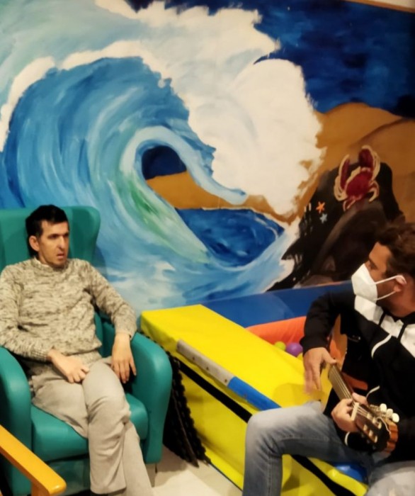 Les sessions de musicoteràpia són essencials pels nostres usuaris. Donades pel musicoterapeuta professional Seve Velasco, no només és treballen els estímuls i les sensacións, concentració i coordinacio; també objectius de Pai. Un treball grupal i al mateix temps individualitzat.