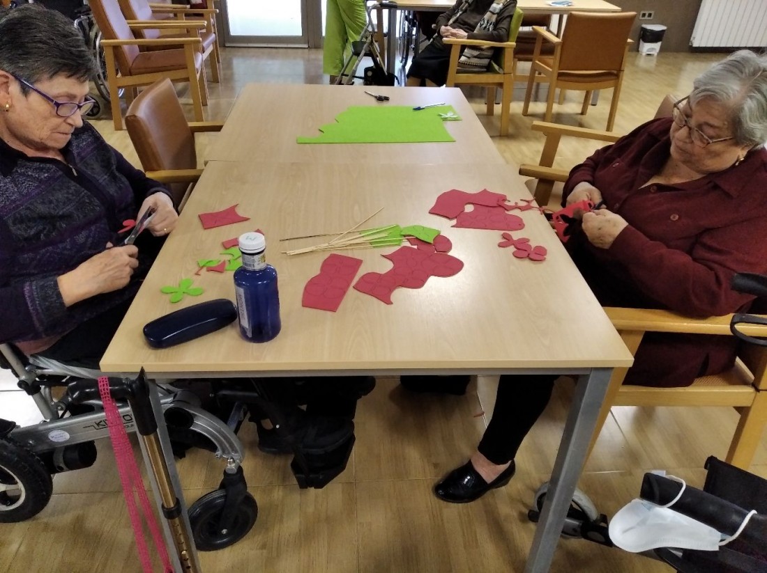 Ja hem començat amb els preparatius de Sant Jordi. Tots els residents están molt implicats amb la realització de les roses.