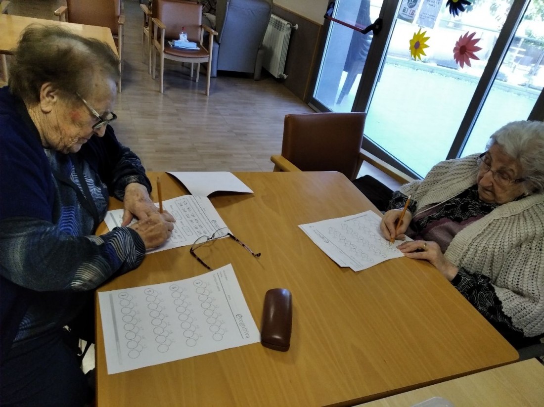 Totes les setmanes, dediquem un día a realitzar exercicis d'estimulació cognitiva escrits. Amb aquests treballem: la percepció, l'atenció, el raonament, la memòria, el llenguatge, l'orientació, etc.
