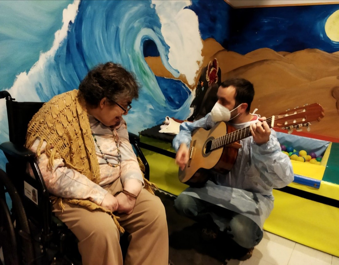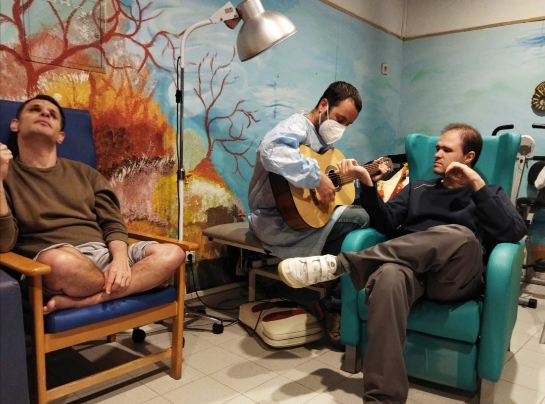 Tots els dimarts, Xavi Guinard, musicoterapeuta professional, bé a treballar les sessions amb els diferents usuaris. Una activitat on es sumen objectius de PAI a treballar.