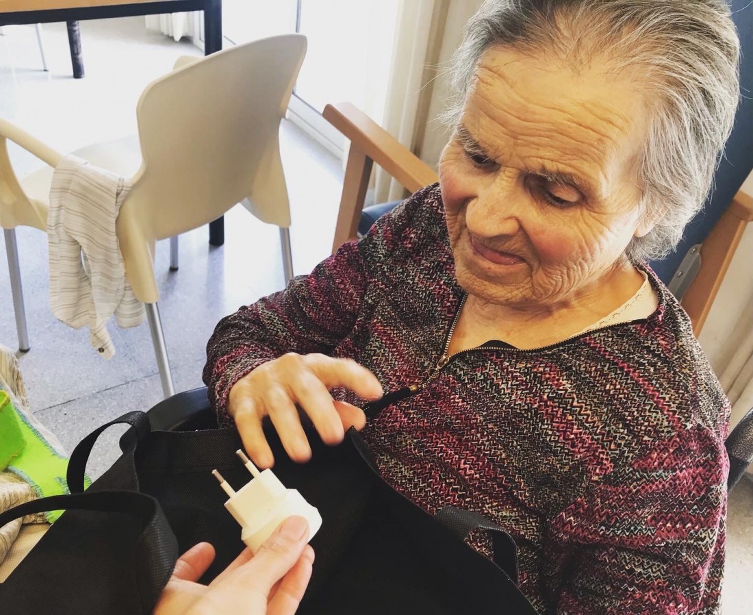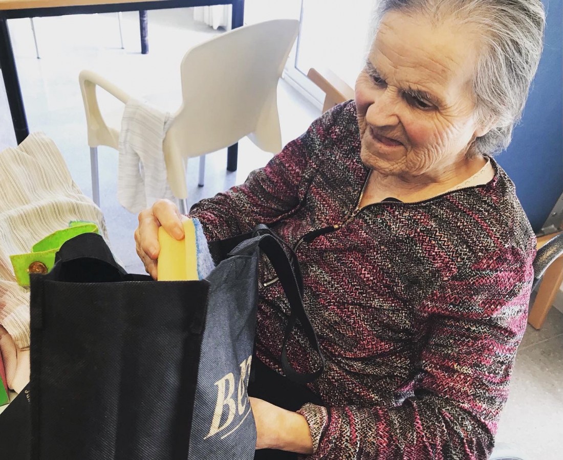 Treballem la Estimulació Sensorial. Sense mirar agafem objectes dins la bossa i endevinem que és... Sorprèn molt el que es toca i el que es veu...