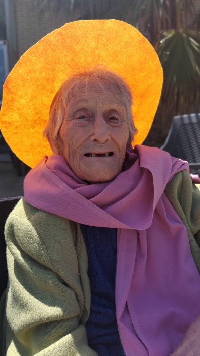 Avui fa un dia esplèndid, fa calor i molt de sol. Els nostres residents han fet les activitats al jardí i d'aquesta manera també han gaudit del sol de maig. Els hi expliquem constantment que la presa de sol, amb moderació i protecció millora el nostre estat de salut i augmenta la vitamina "D".