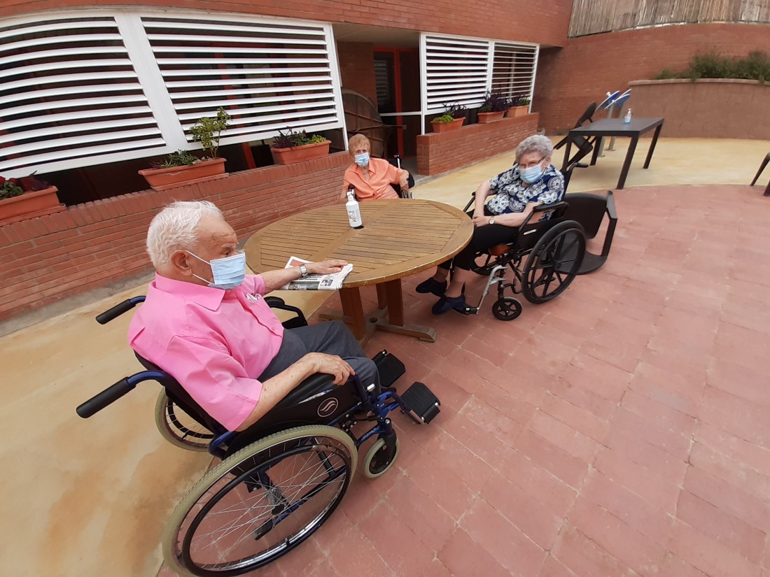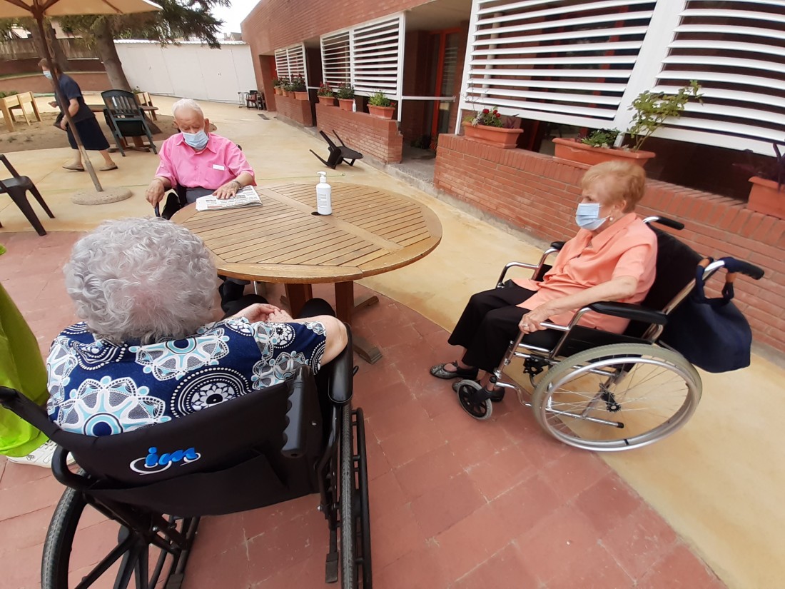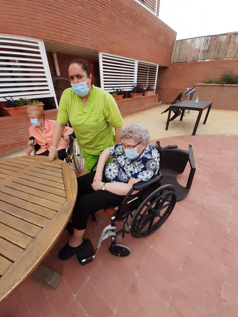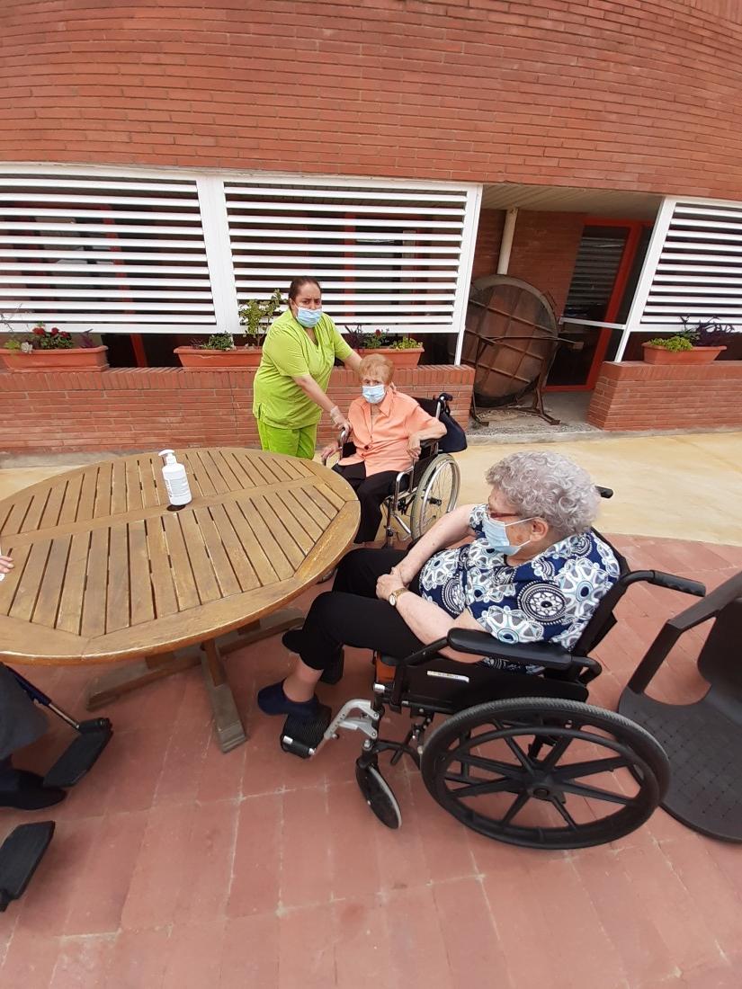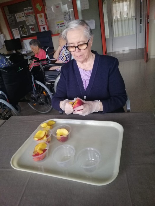 Aprofitant que ha afluixat una mica la calor, hem sortit al nostre jardi a prendre la fresca. També hem fet taller de pelar fruita.