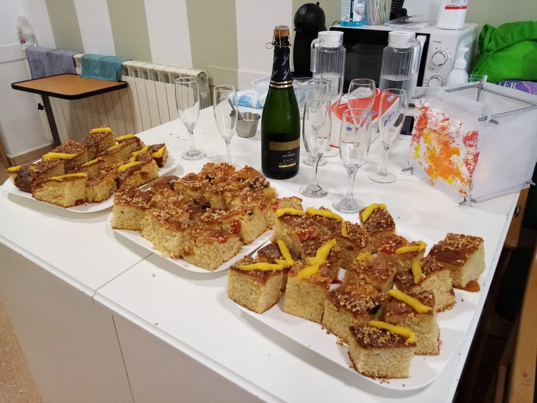 A Casserres ens agrada molt la Coca de Sant Joan. Per això hem decidit fer-la nosaltres mateixes. L'acompanyem amb una copa de cava per fer bona festa!