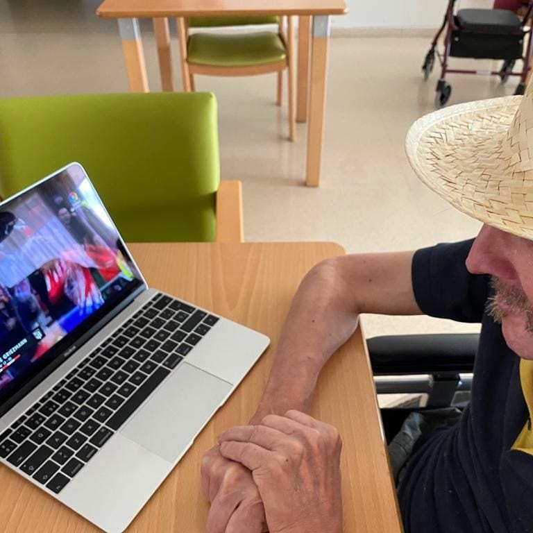 Avui la Berta ha fet molt content el Mariano portant el portàtil perquè pogués veure el seu estimat Atlètic de Madrid. Gràcies Berta!