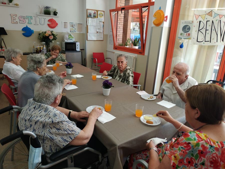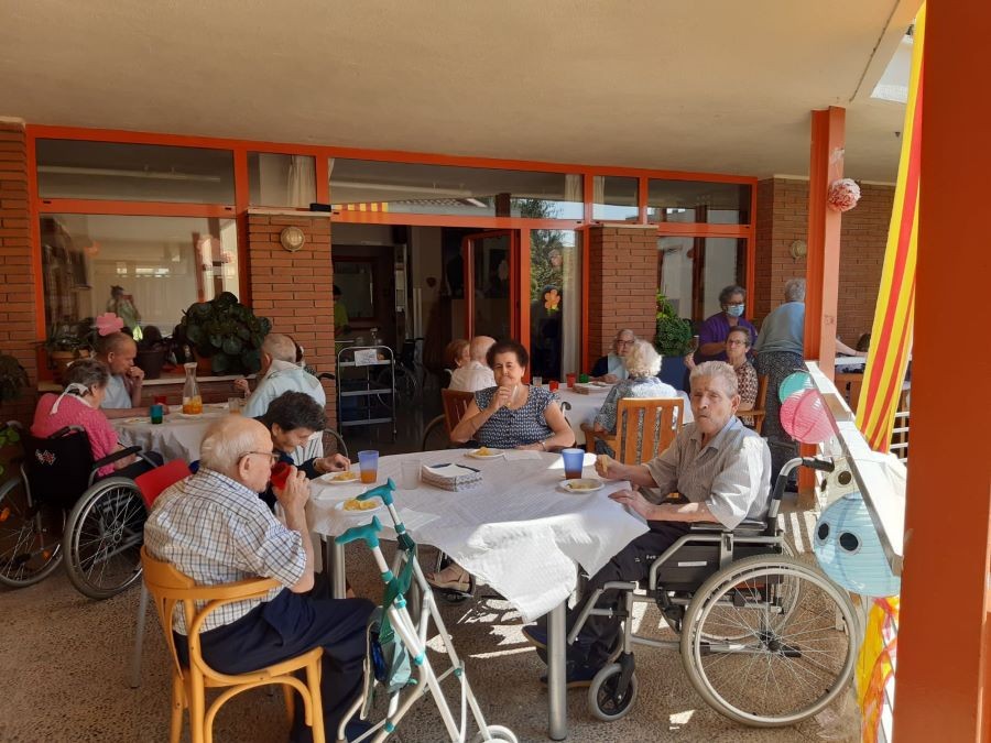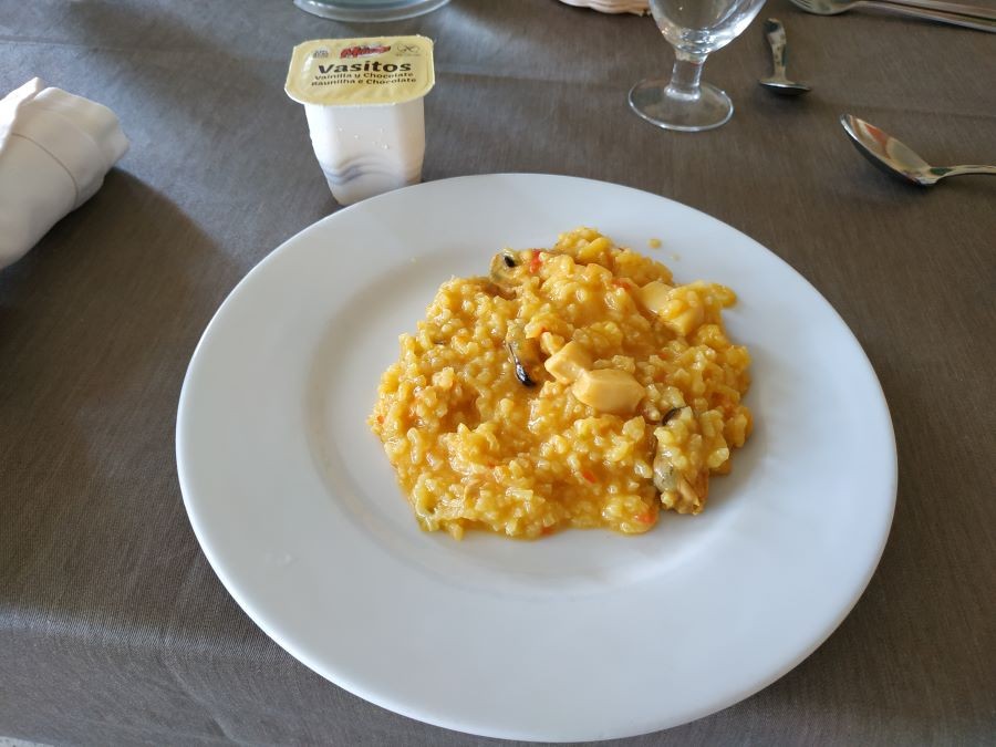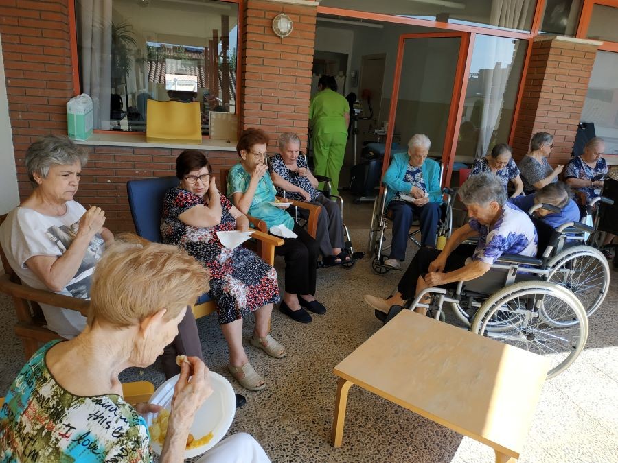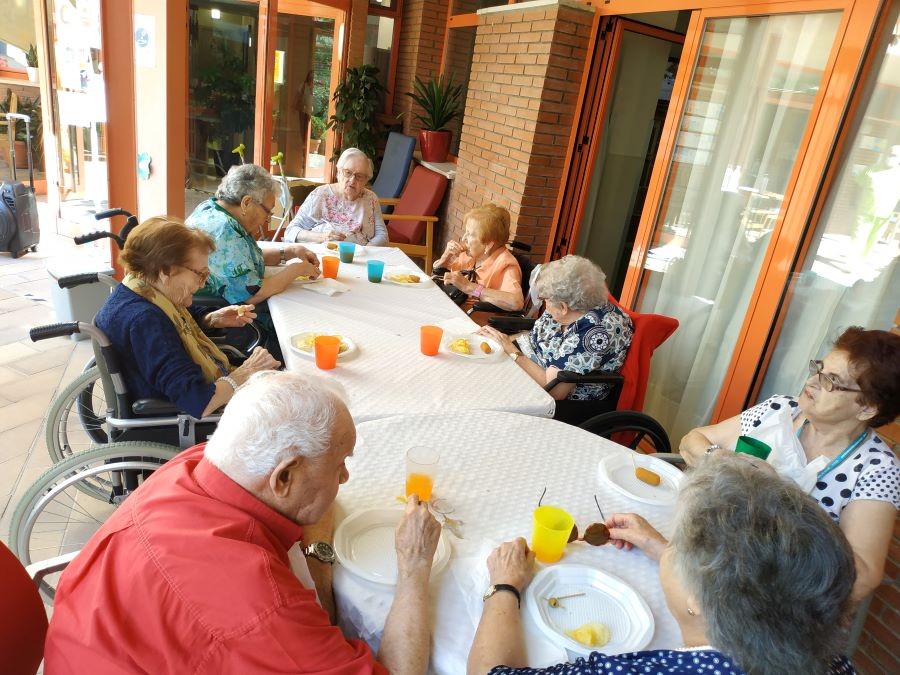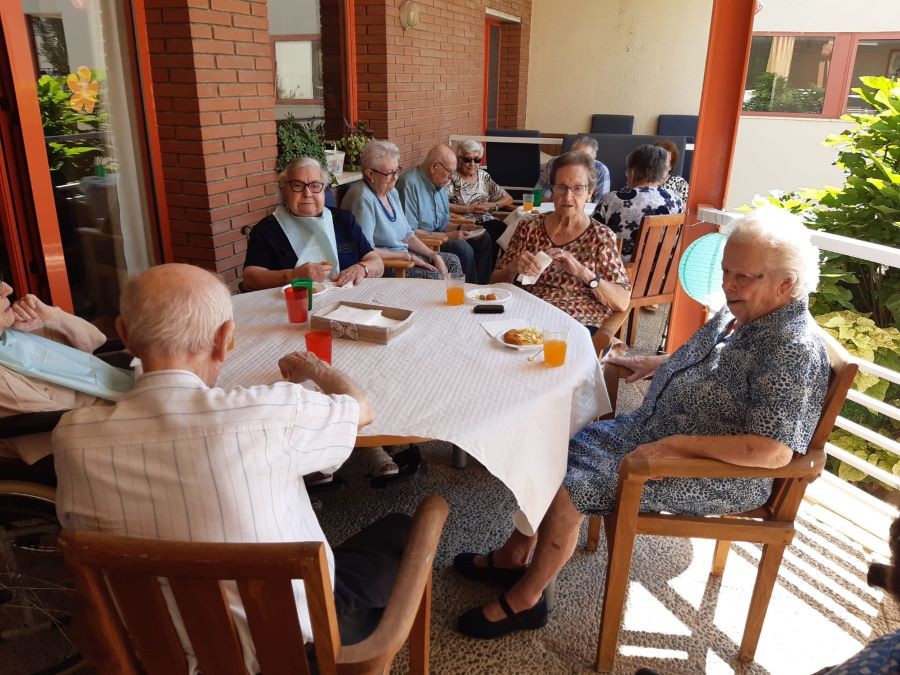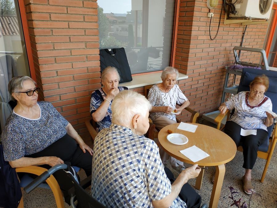 Avui abans de dinar hem fet vermut de festa major amb sangria a les terrasses, acompanyats de música! Ah, per cert, i de dinar em menjat paella de peix amb gelat!