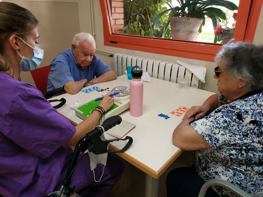 Avui al matí hem estat jugant a bingo i també hem fet activitats quotidianes com per exemple plegar roba.