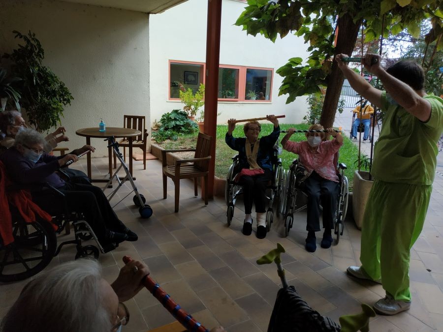 Avui hem fet d'hortelans: hem anat a tallar Maria Lluïsa i seguidament l'hem olorada, l'hem tocada i hem parlat i debatit per a què s'utilitza. També hem retallat i practicat la motricitat fina i finalment, una sessió de gimnàstica grupal.