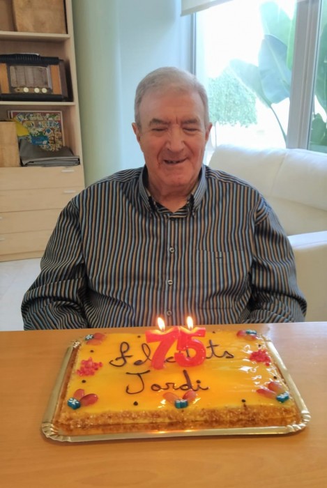 Avui és l'aniversari de Jordi, la seva filla ha portat el pastís per celebrar-ho. Bonísism. Per molts anys més!