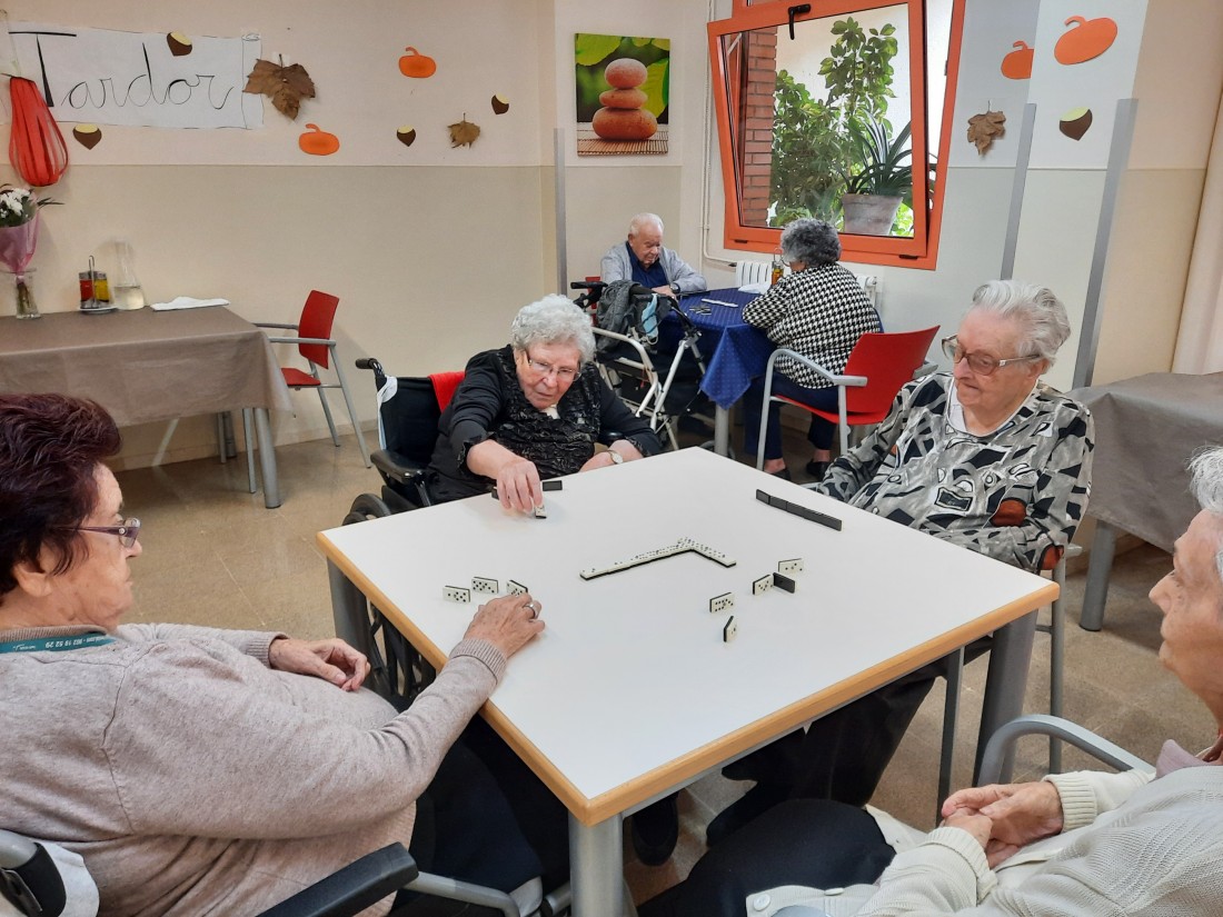 Us compartim algunes de les activitats que fem. Domino, prenem la fresca aprofitant el bon temps que ha tornat, i fem activitat física.