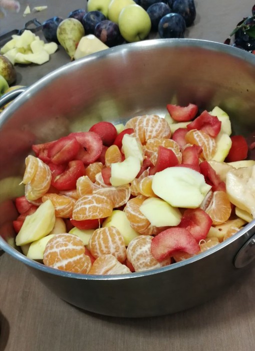 Aprofitem el taller de cuina, per ajudar a preparar el berenar. Ahir vam tallar i pelar la fruita per fer batuts!!
