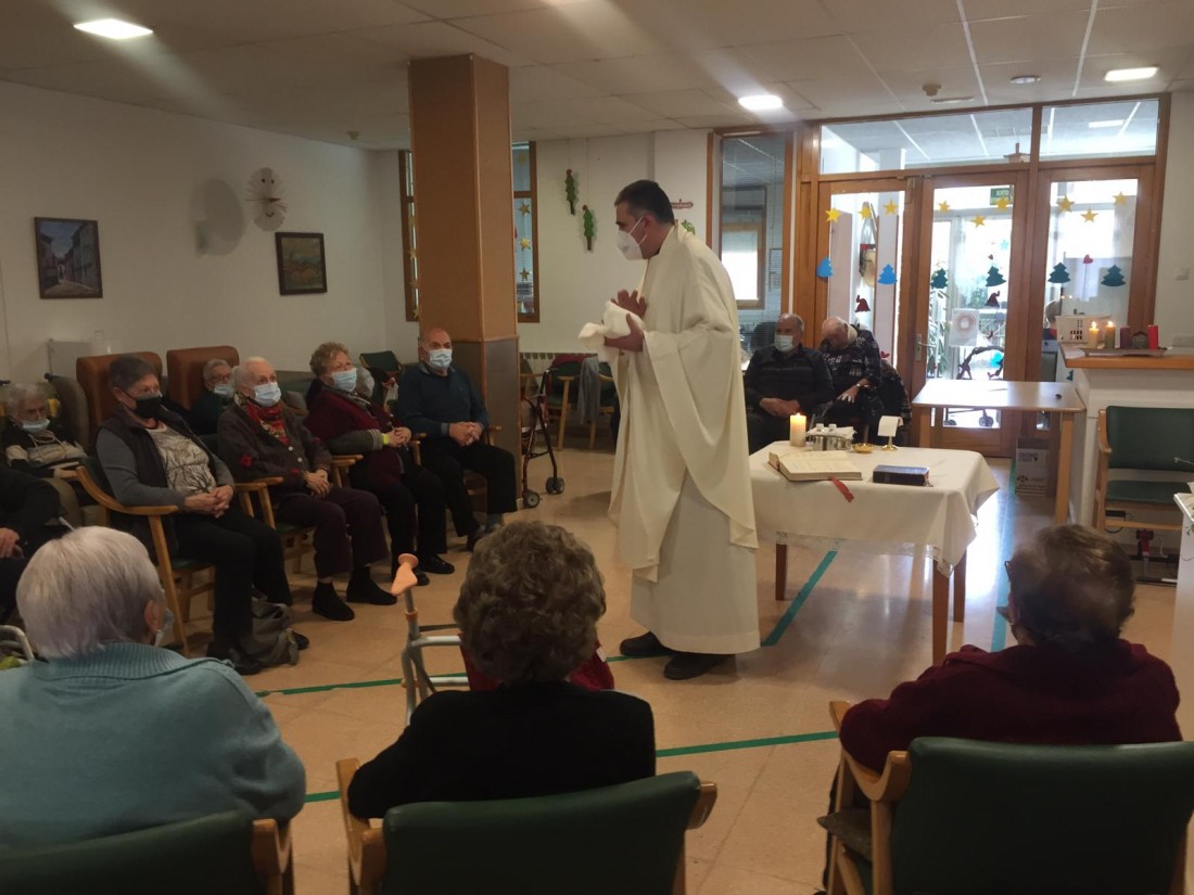 Aquesta setmana Mossèn Lluís ha vingut a la residència no només per a fer la Missa setmanal, sinó que a més, ens ha beneït un nen Jesús i un projecte de vida, cortesia de l'Onada que es va fer amb molt de carinyo per a una de les nostres residents.