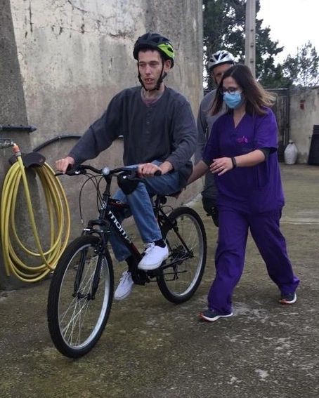 Amb la nostre fisioterapeuta Laura, ens posem en forma amb la bicicleta. Una teràpia lúdica molt profitosa per la salut tant física com mental.