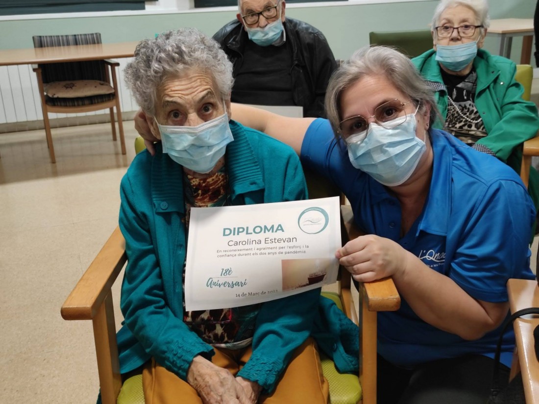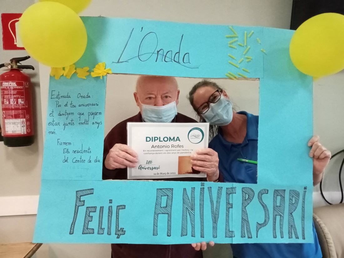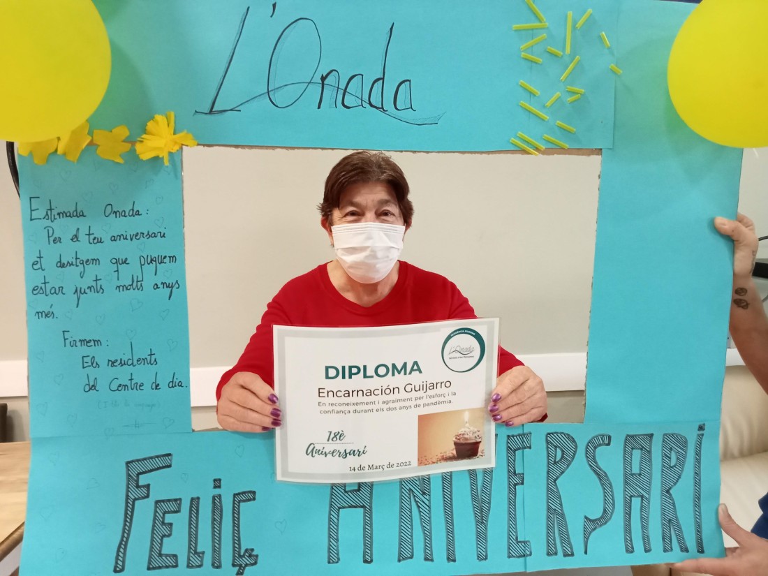 Durant l'acte, vam projectar el vídeo amb un recull dels millors moments festius viscuts a L'Onada Riudoms durant aquests 18 anys de trajectòria, i vam fer el lliurament de diplomes per a les persones residents i usuàries de Centre de Dia, en reconeixement i agraïment per l'esforç i la confiança durant els dos anys de pandèmia.