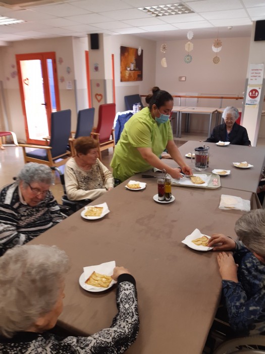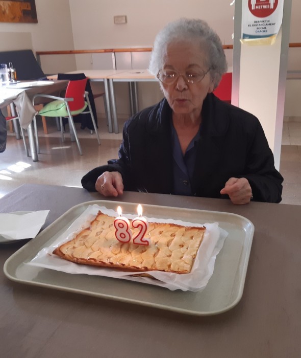 Aquesta tarda hem celebrat l'aniversari de la senyora Dolores, la seva família li ha portat un pastís deliciós! Per molts anys!