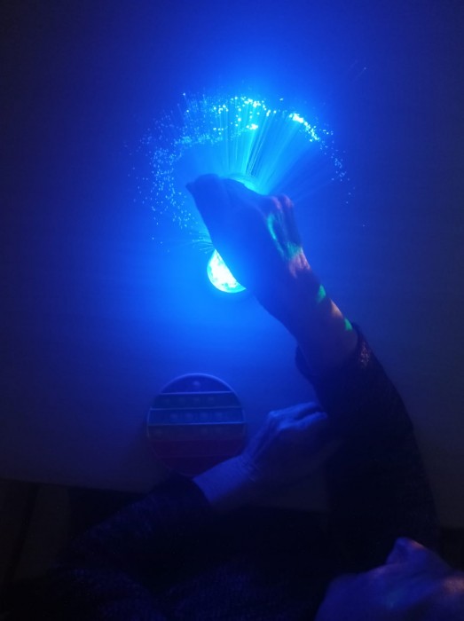 Avui hem dut a terme una activitat d'estimulació sensorial les àrees visuals, auditives i tàctils, amb un ambient de calma i relaxant.