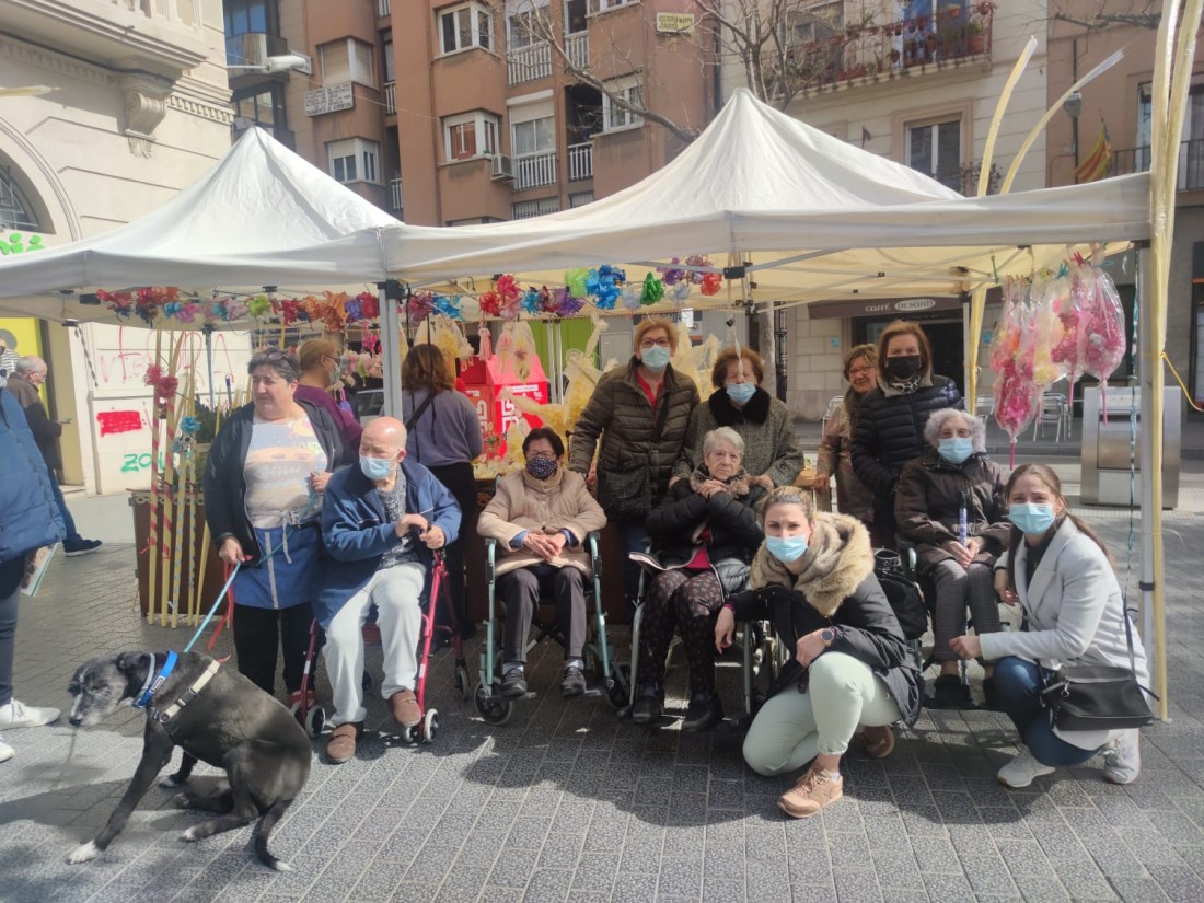 Com és tradició, els usuaris del centre de dia hem fet un passeig fins la plaça de la vila, fins la paradeta de la familia Torres. Cada any ens regalen el material per fabricar les nostres palmes. Moltes gràcies.