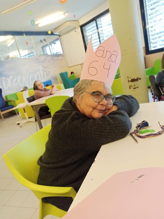 Ana Saladrigas a fet 64anys!!! Va néixer el 12 d'Abril del 1958 a Barcelona. Va assistir al col·legi fins els 14 anys i posseeix el certificat d'estudis primaris. Als 17 anys va treballar en una bugaderia fins que va començar a presentar trastorn del comportament. Va ingressar al nostre centre al Febrer del 1992, fa 30anys. Li agrada el menjar, sobretot dolços i gaudeix molt de les sortides sempre que es faci el tastet. Es un a persona tranquila, poc comunicativa pero molt carinyosa. Per molts anys amb nosaltres Ana!