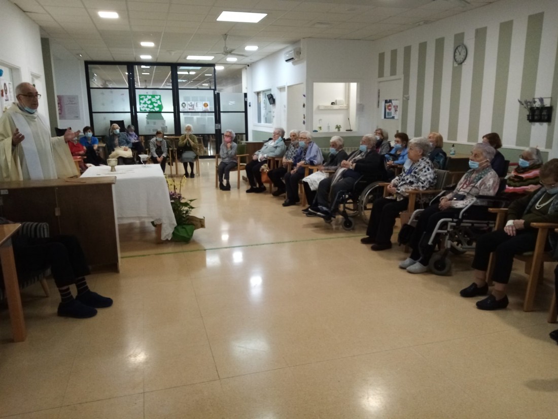 Avui al Mati els Residents de la Residència l'Onada Riudoms han tingut una visita molt especial, el Mossen Rafael ha vingut a Fer la missa del Dijous Sant Hi han quedat encantats, de poder tornar a Fer poc a poc allò que tant anhelen.