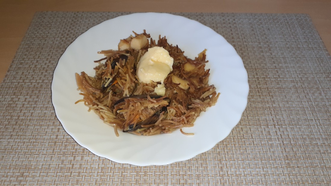 La Maria ens ha preparat un entremés amb musclos i fideuà