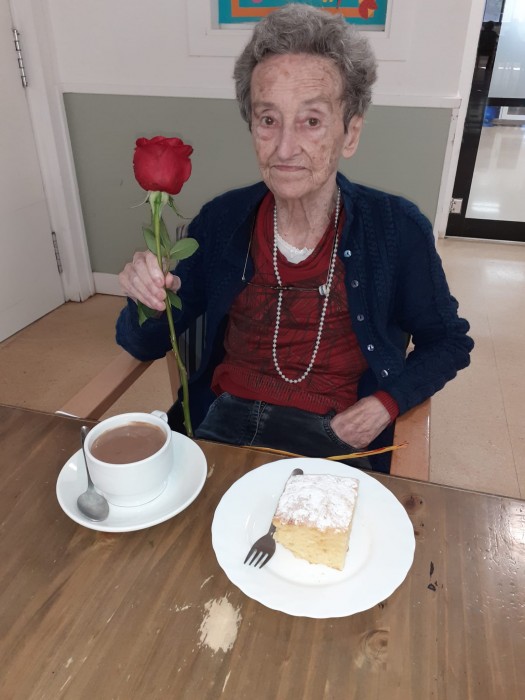 - Sortida a la Plaça de l'Església de Riudoms a repartir roses elaborades per les persones residents als tallers de manualitats, dins del projecte "Una rosa, una abraçada" de L'Onada Serveis