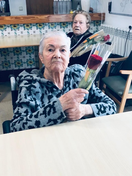 Felices amb les nostres roses de Sant Jordi.